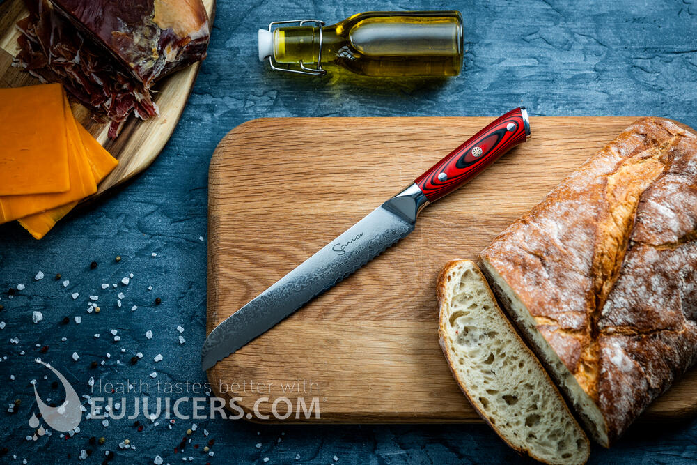 La lame finement dentée glisse sans effort à travers le pain croûté, les pains mous ou les viennoiseries — sans écraser ni émietter. Que vous tranchiez du pain artisanal ou prépariez un buffet, ce couteau haut de gamme garantit des tranches nettes et précises à chaque fois.